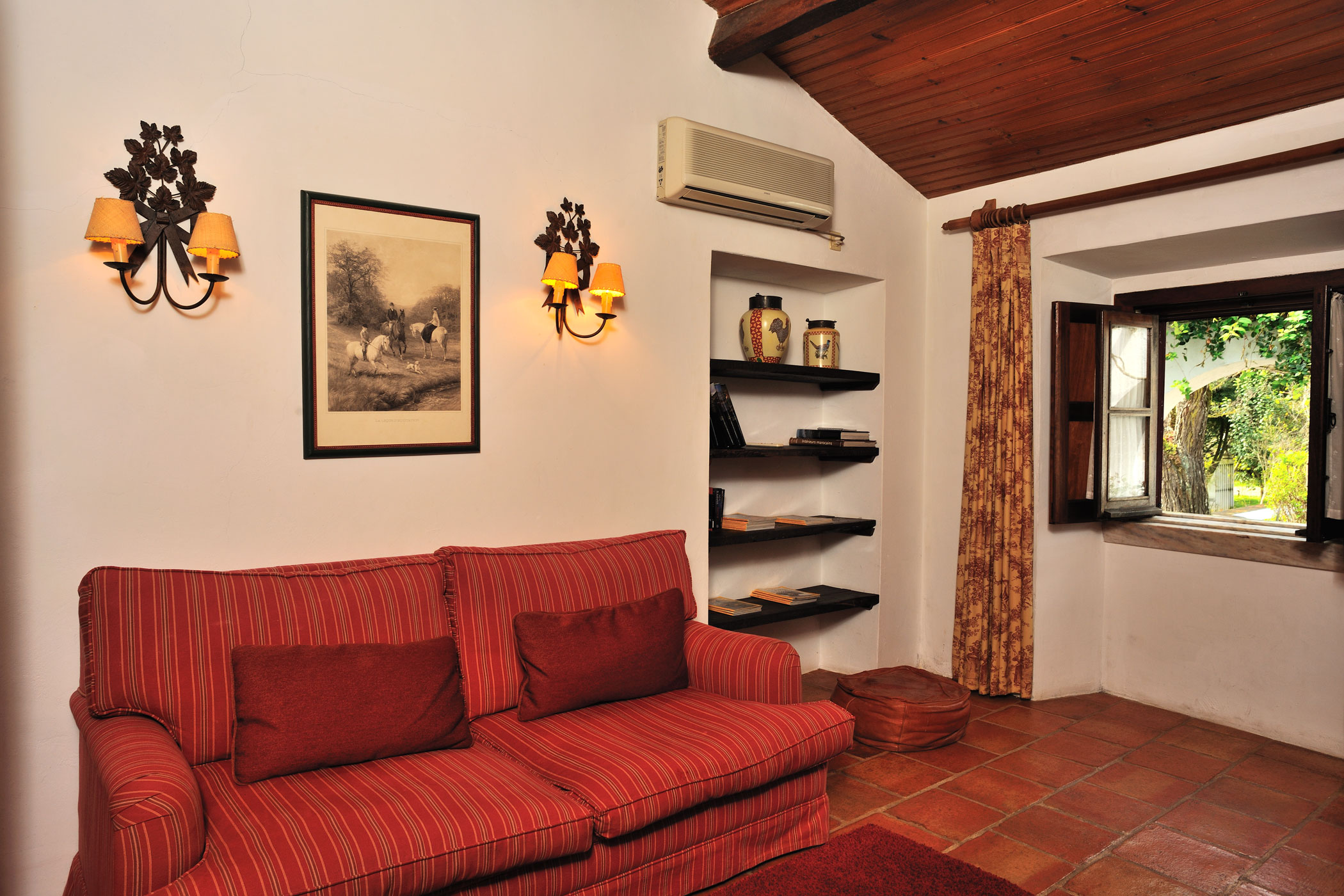 A suite dispõe de ar condicionado e de uma área de estar com uma televisão por satélite.